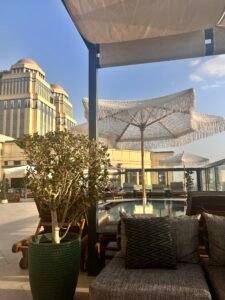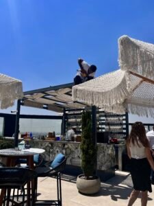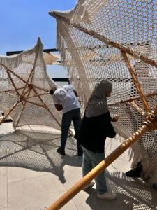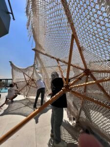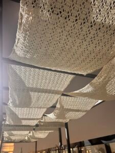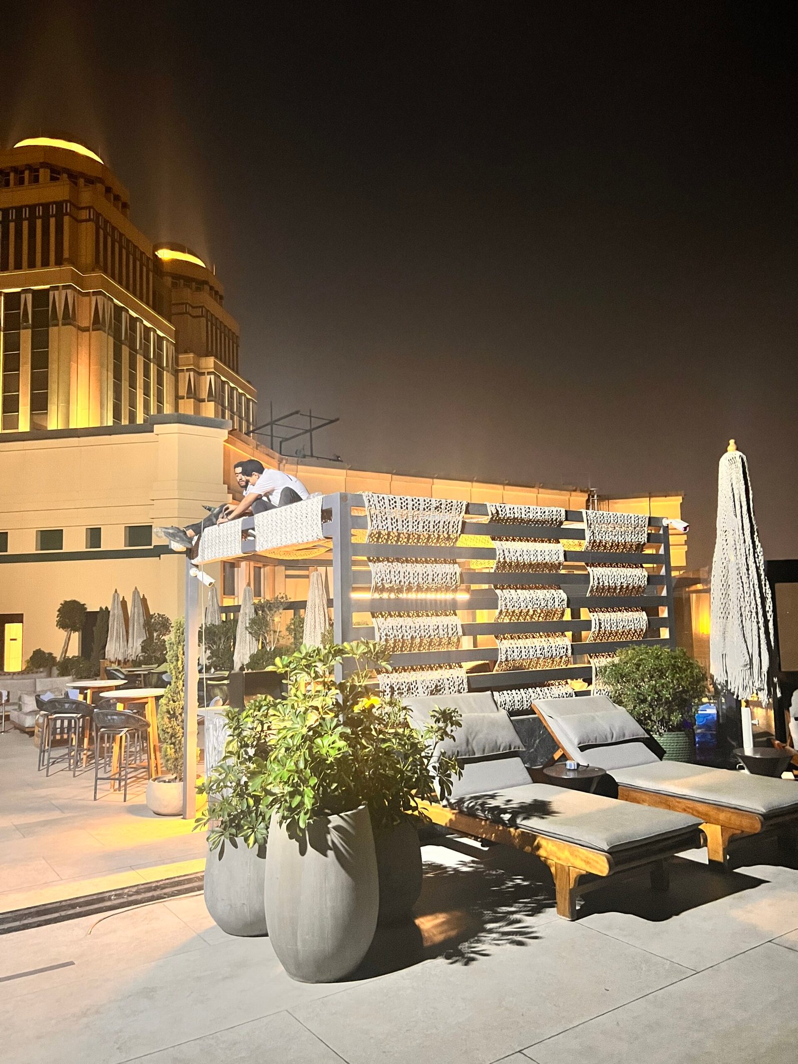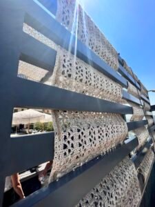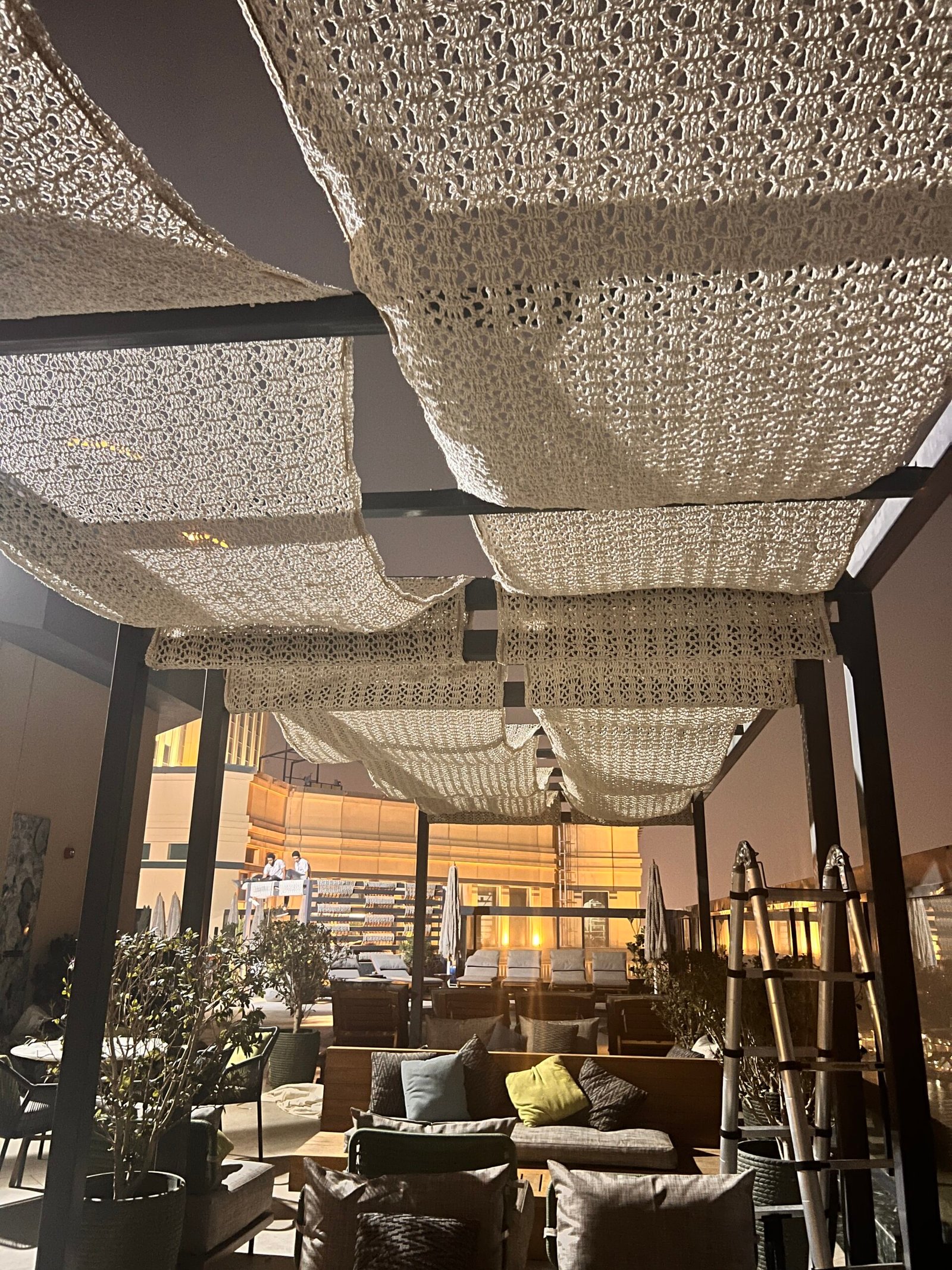 In this project, our company provided a collection of white umbrellas and pergolas, enhancing the visual appeal and comfort while uniquely blocking sunlight