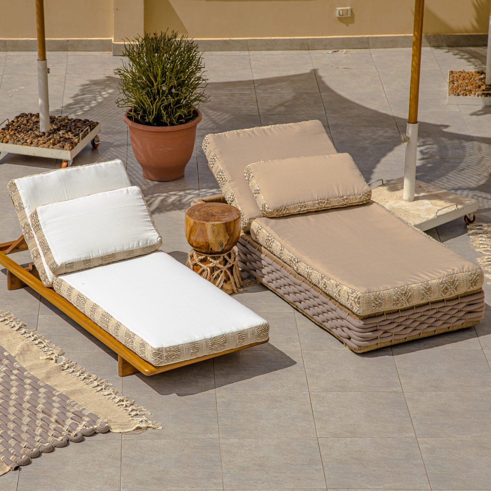 Relax in comfort and style with the Outdoor pitch pine Chaise Lounge. unique and soft cushions provide the perfect spot for relaxing or conversing. Perfect for beach, patio, or poolside cabana this luxurious seat offers a durable frame of pitch pine wood. Woven side provides a combination of natural beauty and weather resistance.